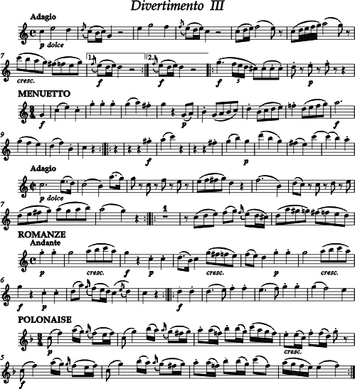 Zusammenfassung zu 5 Divertimenti zu je 5 Sätzen entspricht der üblichen